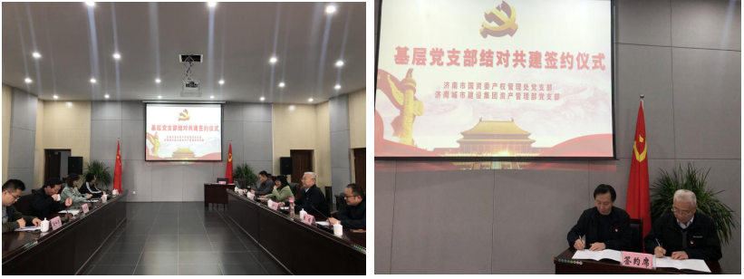 活動中,結對雙方首先舉行了結對共建簽約儀式,雙方黨支部書記分別進行了講話。資管理部黨支部負責同志表示,希望通過“將黨建作為工作統(tǒng)領、以共建促交流、將信任轉化為責任”三個方面促進黨建與工作相互融合,相互促進。市國資委產權管理處黨支部負責同志重點闡述了黨建工作的重要性,在建立科學規(guī)范、靈活高效的國有資產管理制度,充分發(fā)揮資產效益等重點工作給出了建議指導。隨后,雙方黨支部書記簽訂了《基層黨組織結對共建協(xié)議書》。