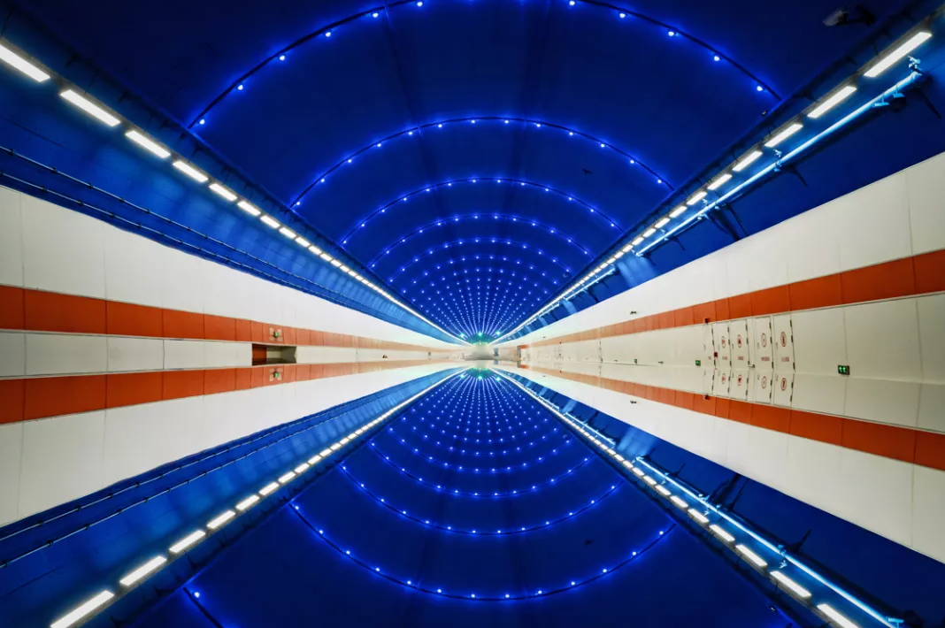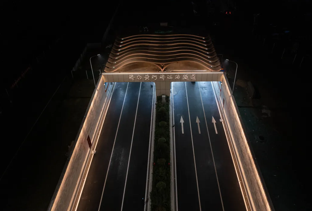 濟南黃河濟濼路隧道設計方案以黃河文化根脈為基,黃河之“光”為“場”,融合黃河歷史、文化、自然、藝術(shù)等表現(xiàn)黃河兩岸是我家。“黃河根脈歲歲安瀾”主題設計定位為城河相融,動靜相融,蘊含“天人合一”的設計理念,讓黃河隧道藝術(shù)空間景觀和自然互為補充。設計中借黃河水紋傳統(tǒng)紋樣,將黃河文化與自然生態(tài)中的場地、色彩、光影結(jié)合,再造了黃河地形與黃河流動的自然之美,描繪了新時代黃河畫卷中詩情畫意的城市底蘊。