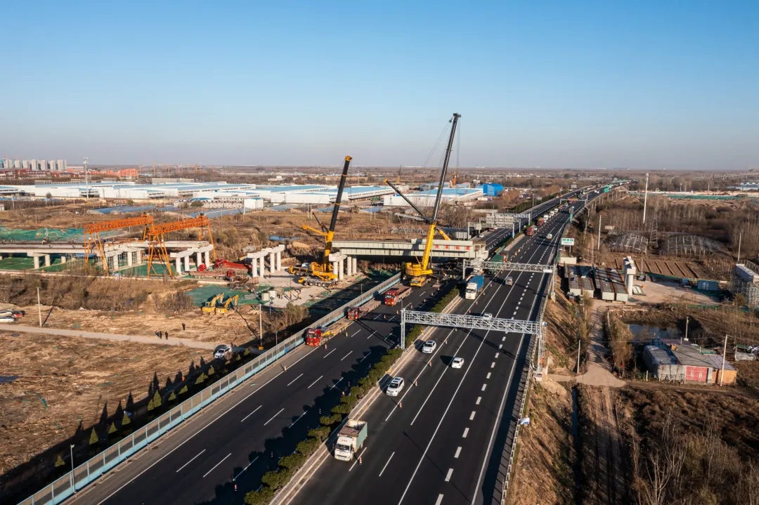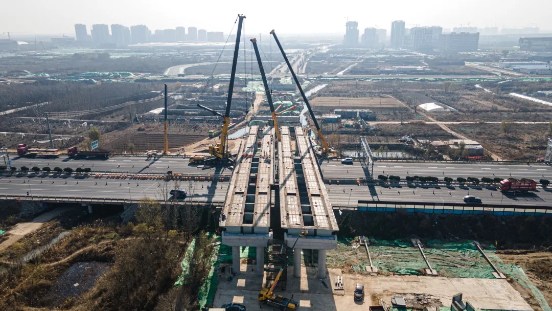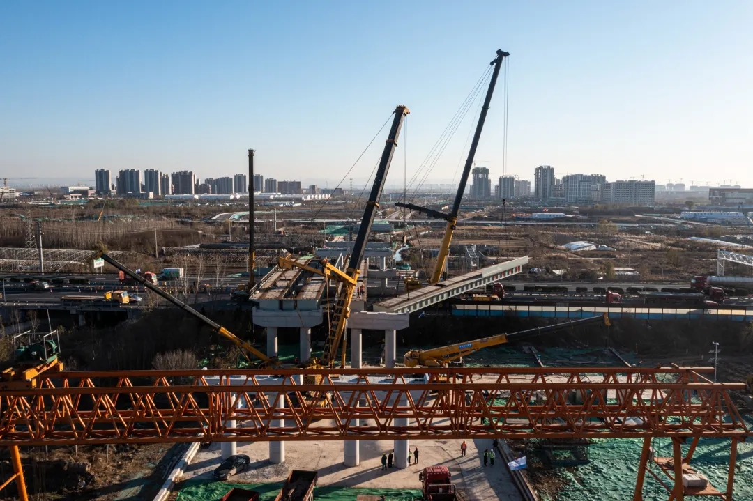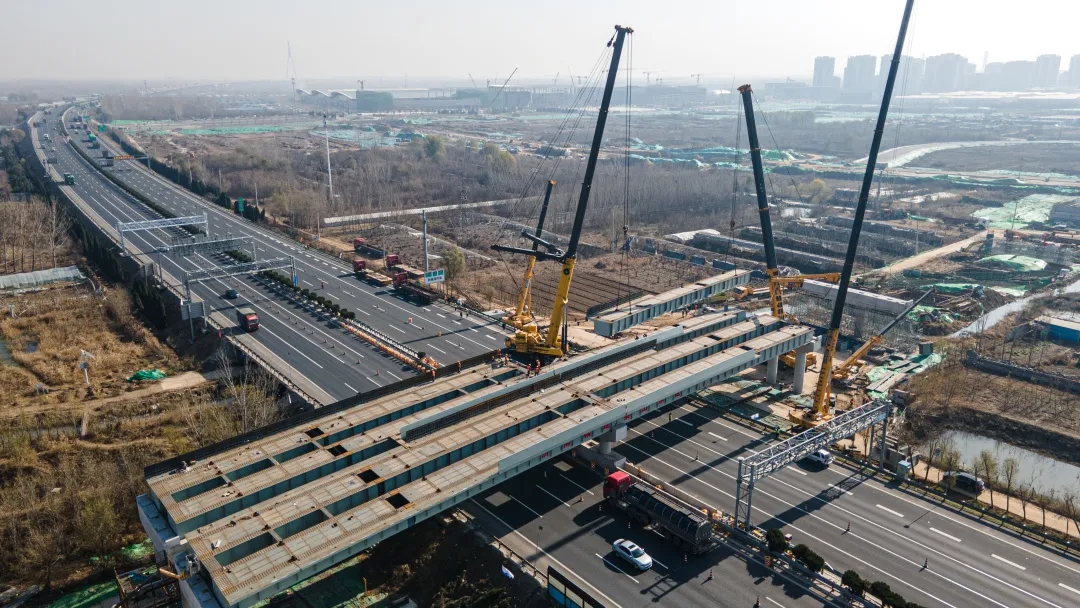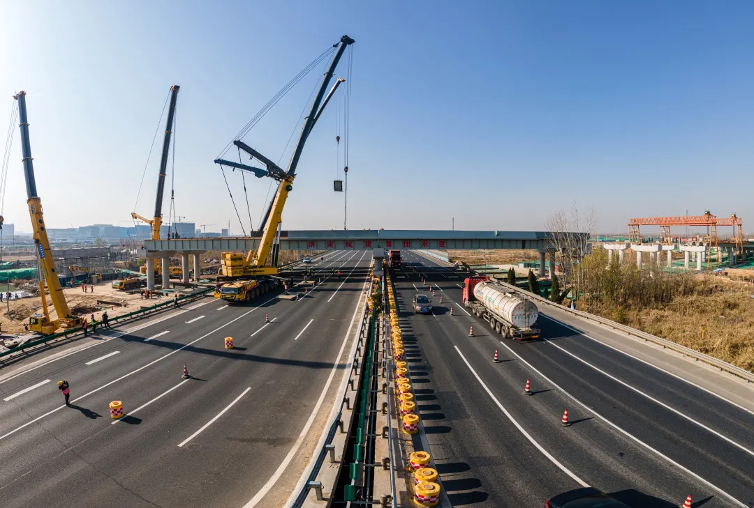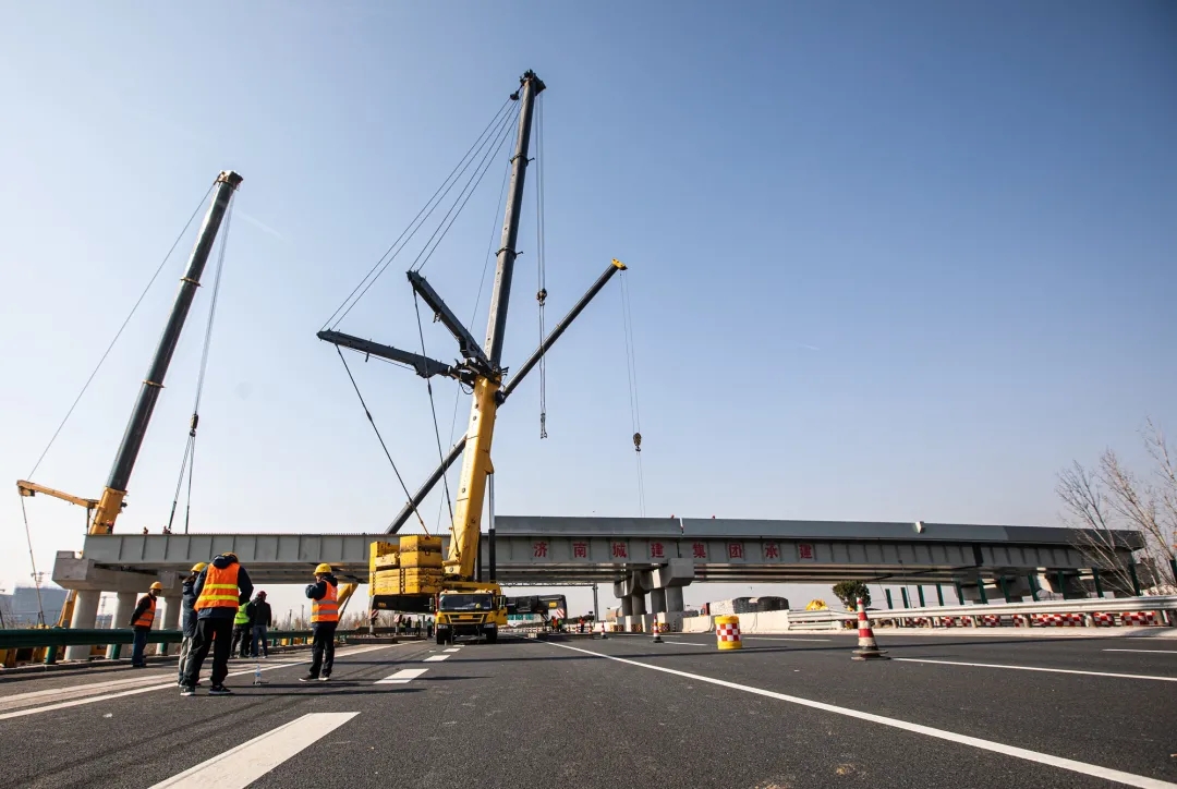 11月25日,歷時8小時施工作業(yè),由建設(shè)集團受委托建設(shè),集團所屬濟南城建集團有限公司第四分公司負(fù)責(zé)施工建設(shè)的濟南新舊動能轉(zhuǎn)換起步區(qū)智慧物流園區(qū)二期工程一標(biāo)段西環(huán)路跨線橋鋼箱梁吊裝完成,順利跨越青銀高速。