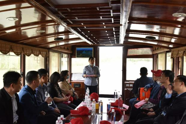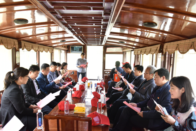 活動中,全體人員參觀了濟西濕地,并詳細(xì)了解了濟西濕地的建設(shè)情況。黨員代表分享了“中共一大南湖紅船”故事,全體黨員共同誦讀《紅船,從南湖啟航》,濕地青年員工進行紅歌表演。