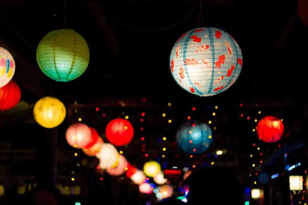 街頭巷尾,到處花團錦簇,燈光搖曳。