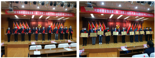 2021年工作推進會由黃河路橋公司黨委副書記、常務(wù)副總經(jīng)理、總經(jīng)濟師王國軍主持。會議宣讀了關(guān)于2020年度先進集體和先進個人的表彰決定,并對獲獎集體和個人代表進行了現(xiàn)場表彰。