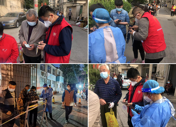 在板橋社區(qū),身穿紅色隊(duì)服的青年突擊隊(duì)志愿者走街串巷,從宣傳發(fā)動到為每一位村民進(jìn)行核酸檢測,他們分布在疫情防控的各個(gè)環(huán)節(jié)。“麻煩幫我看看這個(gè)怎么掃碼”“請問做核酸在哪排隊(duì)”“請?jiān)诠芸貐^(qū)路口支設(shè)圍擋”,志愿者們細(xì)心講解、耐心指導(dǎo),有人啞了嗓子,有人磨出了水泡,但他們始終堅(jiān)守崗位、恪盡職守,在板橋社區(qū)繪出一抹堅(jiān)守的志愿紅。
