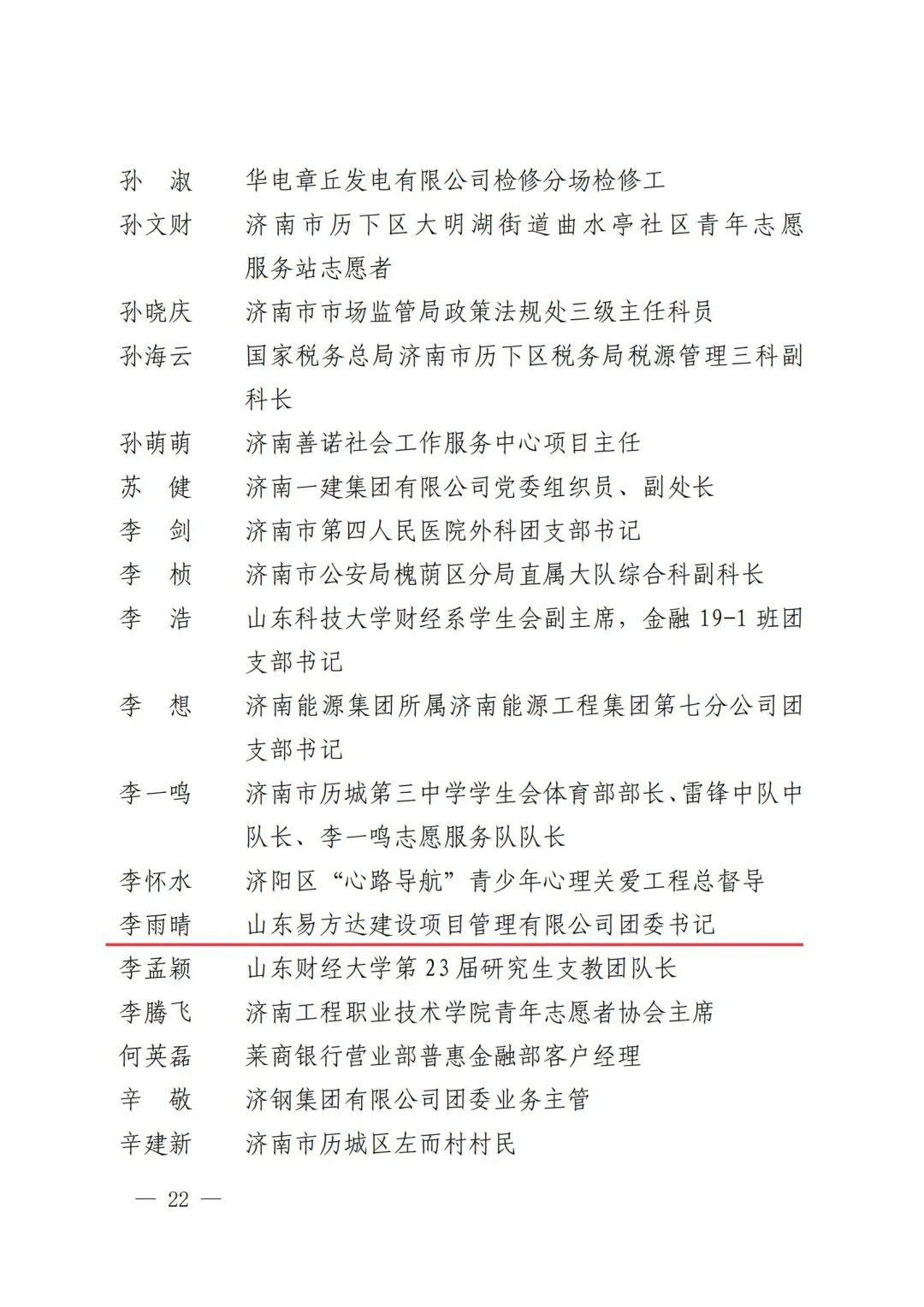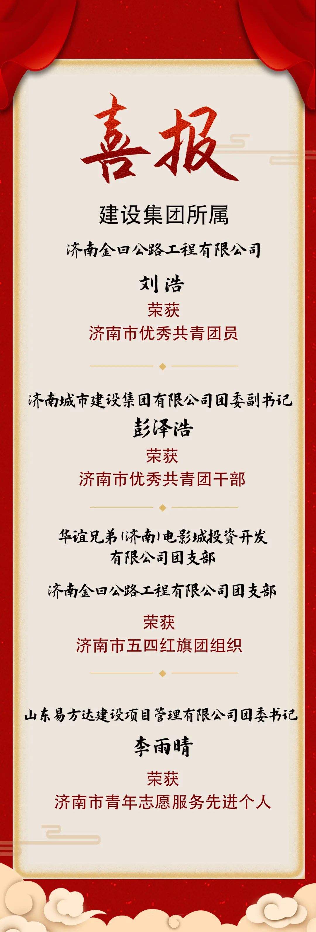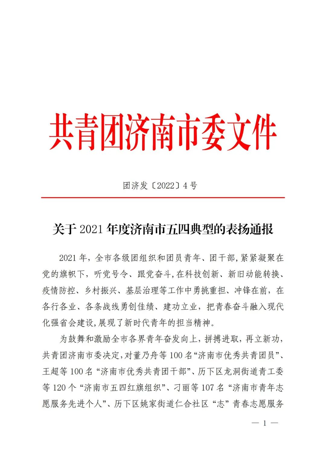 近日,共青團濟南市委公布了《關(guān)于2021年度濟南市五四出彩典型的表揚通報》,建設(shè)集團團委所屬團組織及團員青年榮獲“濟南市五四紅旗團組織”“濟南市青年志愿服務(wù)先進(jìn)個人”“濟南市優(yōu)秀共青團員”“濟南市優(yōu)秀共青團干部”等4項榮譽稱號。