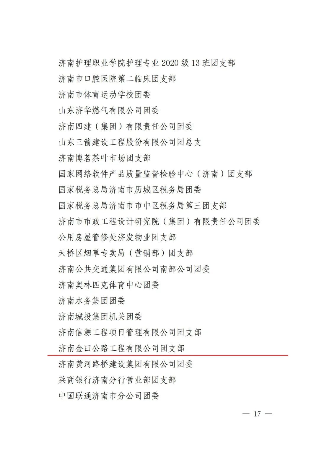 濟南城市建設(shè)集團各級團組織和廣大團員青年、共青團干部將以受到表彰的單位和個人為榜樣,更加緊密地團結(jié)在以習(xí)近平同志為 核心的黨中央周圍,深入學(xué)習(xí)貫徹習(xí)近平新時代中國特色社會主義思想,增強“四個意識”、堅定“四個自信”、做到“兩個維護”,以優(yōu)異青春業(yè)績迎接黨的二十大勝利召開!