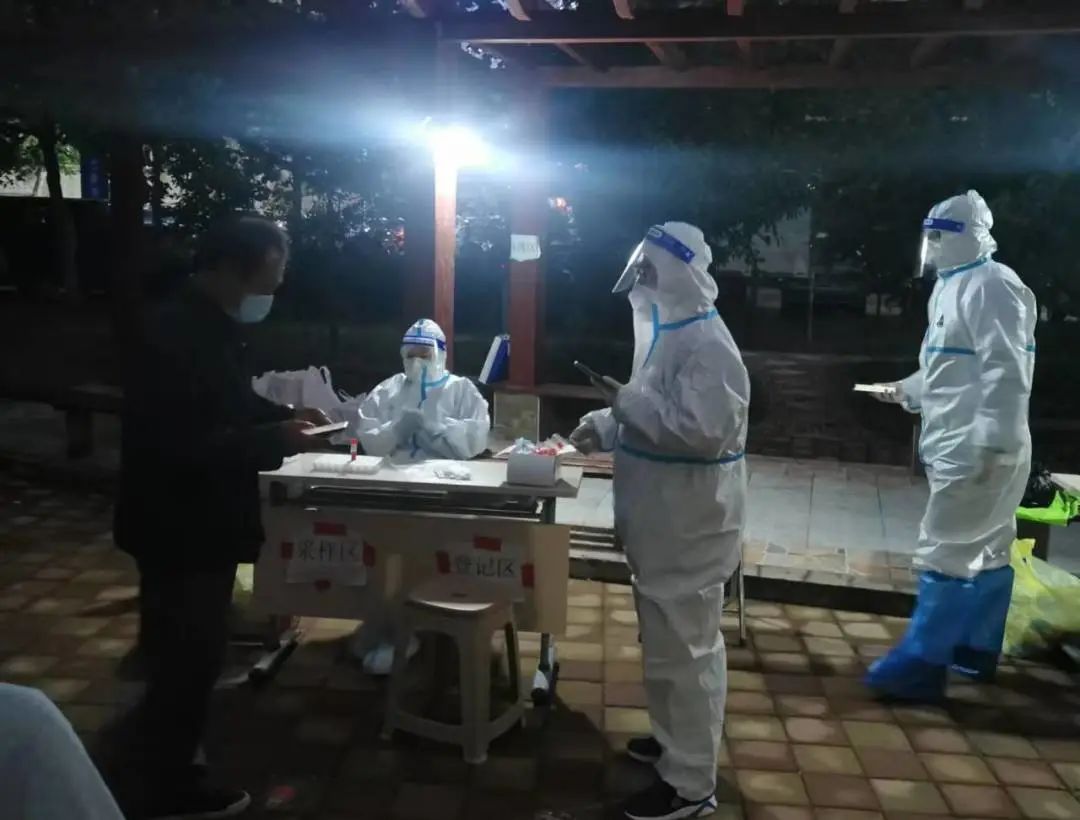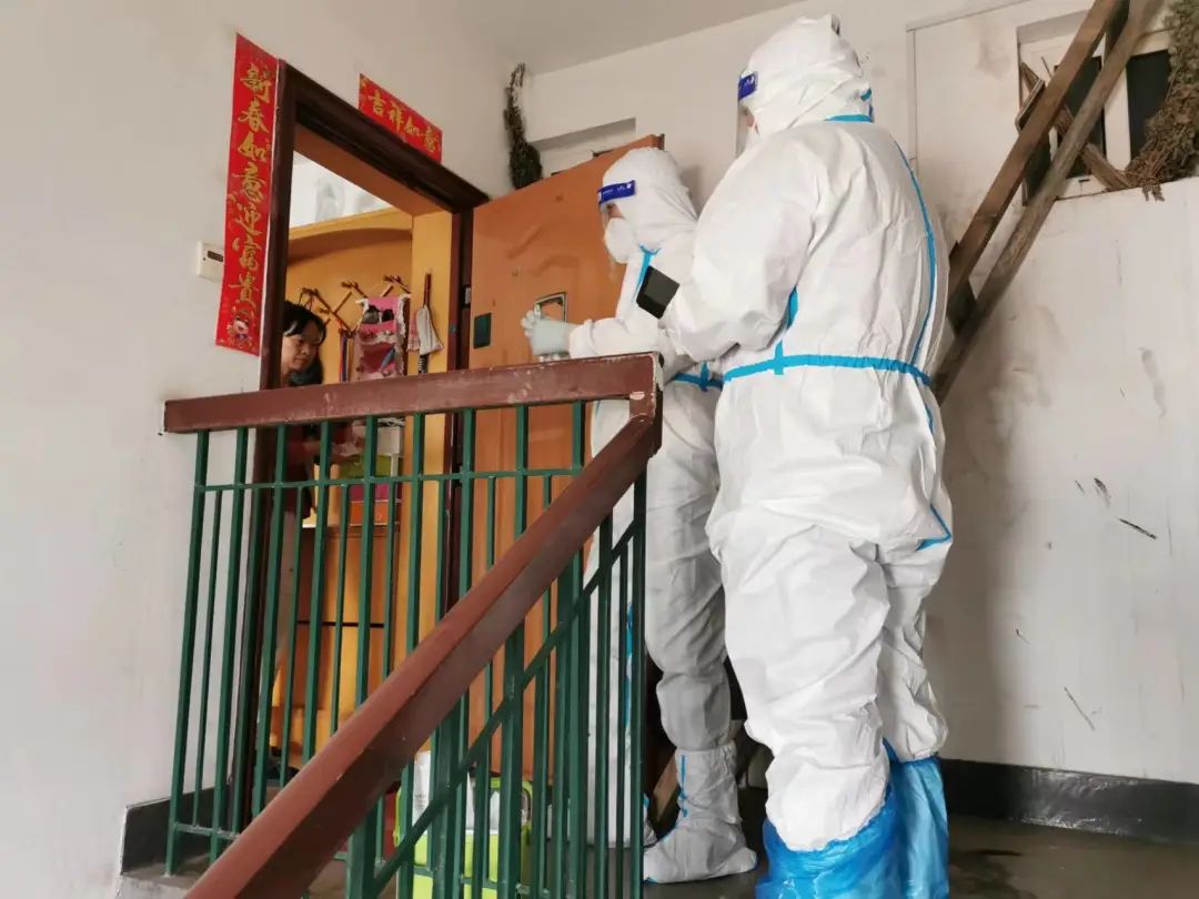 “請(qǐng)佩戴好口罩,保持一米以上安全距離”“請(qǐng)?zhí)崆皽?zhǔn)備好檢測(cè)碼或身份證,有序排好隊(duì)”……熟練地登記、掃碼、采樣,一氣呵成,現(xiàn)場(chǎng)核酸采樣后,杜謙又跟隨社區(qū)醫(yī)護(hù)人員挨家挨戶上門檢測(cè)。