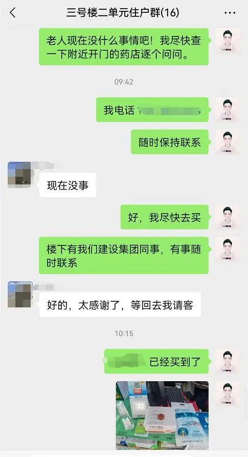 孫景鑫得知情況后,徒步對(duì)小區(qū)附近內(nèi)藥店進(jìn)行詢問(wèn),均沒(méi)有這種藥品,又經(jīng)多方聯(lián)系,開車延稼軒路向南一直到工業(yè)北路向濟(jì)鋼方向一路尋找,終于尋到此藥品,自費(fèi)購(gòu)買了一個(gè)月正常使用量的“心痛寧滴丸”,并為獨(dú)居老人捎帶部分防疫和消暑物資。隨后,他又投身于戰(zhàn)“疫”工作中,并在住戶微信群里說(shuō)道:“樓下有我們建設(shè)集團(tuán)的同事,有事隨時(shí)聯(lián)系我們。”