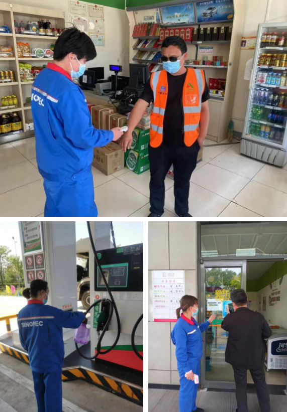加油站作為人員、車輛流動區(qū)域,疫情防控尤為重要,各站點嚴(yán)格執(zhí)行重點區(qū)域(加油槍、營業(yè)室把手、加油機(jī)等)不少于3次消殺要求,嚴(yán)格落實掃碼、測溫等措施。同時為客戶備好消毒液、洗手液,引導(dǎo)客戶使用中石化“一鍵加油”,實現(xiàn)無接觸加油消費,提升客戶消費體驗和滿意度。在加強(qiáng)疫情防控的同時,嚴(yán)格按照“八步法”、接卸油流程進(jìn)行規(guī)范操作,確保安全運營。