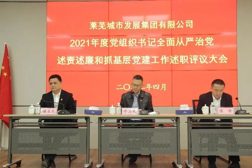 為全面總結2021年度基層黨建工作成果,部署2022年度基層黨建重點任務,4月15日,建設集團所屬萊蕪城市發(fā)展集團有限公司黨委召開直屬黨組織書記履行全面從嚴治黨責任和抓基層黨建述職會議。建設集團副總經理許為民出席會議并講話,萊蕪城發(fā)集團領導班子成員,各直屬黨組織書記,各事業(yè)中心、子公司負責人,相關部室負責人及黨員代表參加會議。