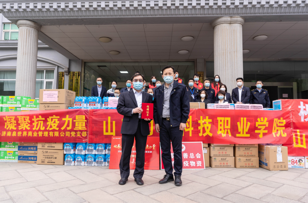 此次活動,濟南泉世界商業(yè)管理有限公司黨支部積極組織干部職工向槐蔭區(qū)住建局、槐蔭區(qū)城管局、槐蔭區(qū)交警大隊捐贈口罩、84消毒液、消毒酒精、礦泉水、方便面等防疫用品和生活物資,同時對一線工作者表示敬意。