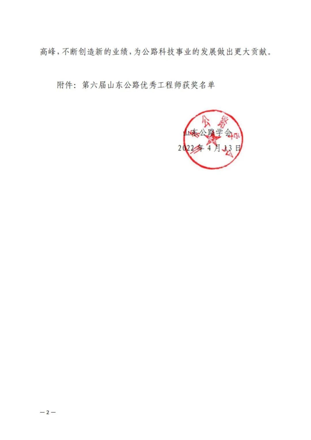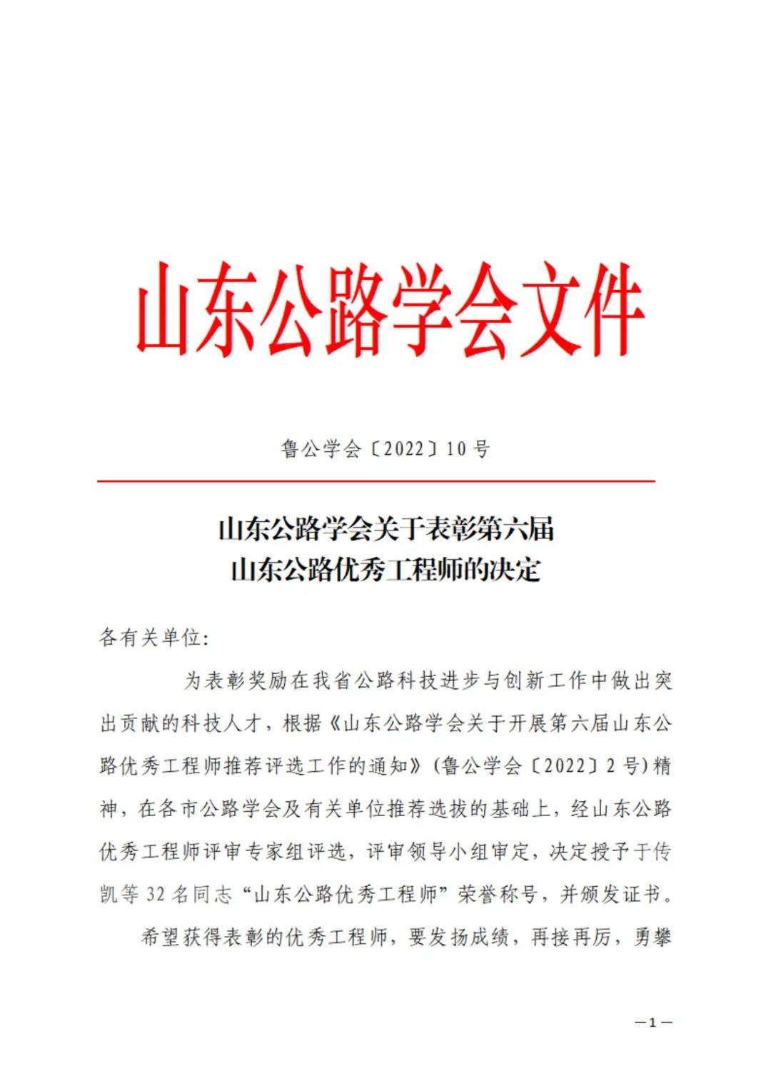 “山東公路優(yōu)秀工程師”評選活動由山東公路學會組織,每年在全省范圍內(nèi)評選一次,旨在激勵廣大公路交通科技工作者積極投身山東公路事業(yè),發(fā)揚創(chuàng)新、求實、協(xié)作、奉獻精神,推動山東省公路交通科技進步和創(chuàng)新。