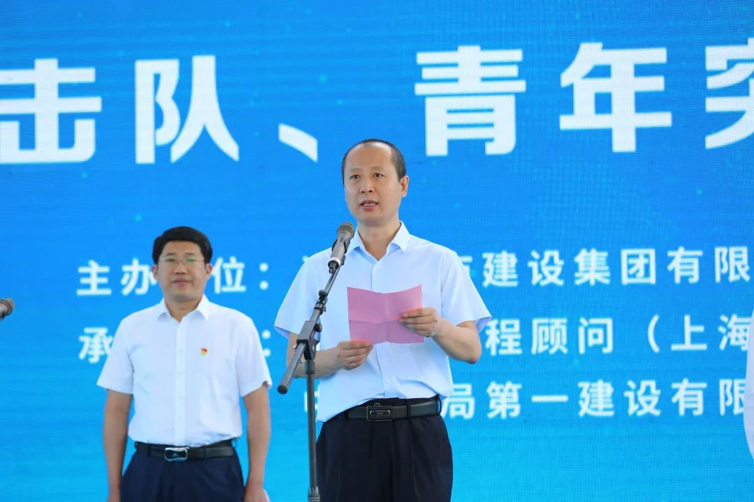 活動中,建設(shè)集團(tuán)工程四部負(fù)責(zé)同志宣讀勞動競賽實施方案及黨員突擊隊、青年突擊隊組織方案;參建單位代表分別作表態(tài)發(fā)言;出席活動領(lǐng)導(dǎo)向“黨員突擊隊、青年突擊隊”授旗。