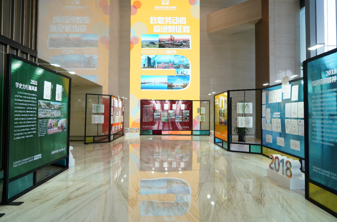在第五屆“漫畫最美勞動者”活動中,12位書畫家在濟南城市建設大廈,為集團2019—2021年度榮獲市級以上榮譽獲得者創(chuàng)作書畫作品,同時,舉辦了過往四年漫畫作品展,以時間跨度為展覽軸線,從“人物成長”和“項目發(fā)展”兩個維度,從“2018·緣起勞模精神”“2019·描繪闊步北跨”“2020·三載重逢嘆巨變”“2021·學史力行展風采”四個章節(jié)集中呈現(xiàn)集團建設精神、勞動精神和重點項目的建設歷程,不斷凝聚人心,激勵廣大干部奮力攻堅,為新時代社會主義現(xiàn)代化強省會建設貢獻力量。
