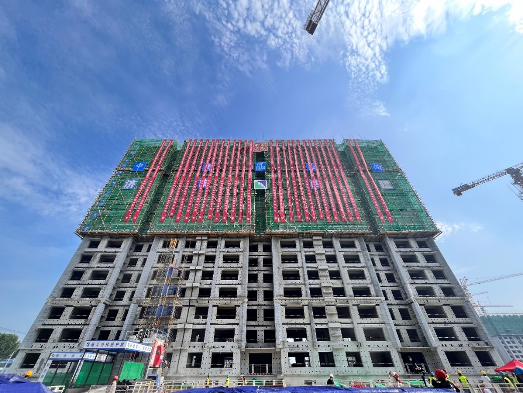 7月15日,由濟南城市建設集團受委托建設的濟南新舊動能轉(zhuǎn)換起步區(qū)孫耿街道七村整合安置區(qū)(二期)工程2#樓封頂,是二期項目首棟封頂單體工程。日前,孫耿街道七村整合安置區(qū)(三期)工程已完成首棟住宅封頂,目前,二期、三期工程正搶抓黃金施工期,全力推進工程建設。