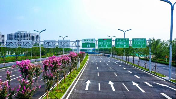 本次通車路段為青銀高速以南段,全長約11.8公里,是起步區(qū)大橋和崔寨組團(tuán)之間復(fù)合交通走廊,黃河大道不僅是一條交通大動(dòng)脈,還是一條科技含金量成色十足的科技示范路。