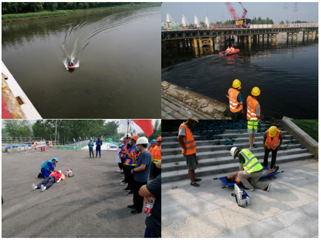 此次演練以小清河發(fā)生洪水險(xiǎn)情為背景,按照宣布啟動(dòng)應(yīng)急響應(yīng)、展開(kāi)險(xiǎn)情排查、集結(jié)指揮部成員和實(shí)地開(kāi)展防汛搶險(xiǎn)流程進(jìn)行。演練內(nèi)容包括堤壩加固、拋投救生圈救援、救生艇救援、醫(yī)療救護(hù)4個(gè)科目。