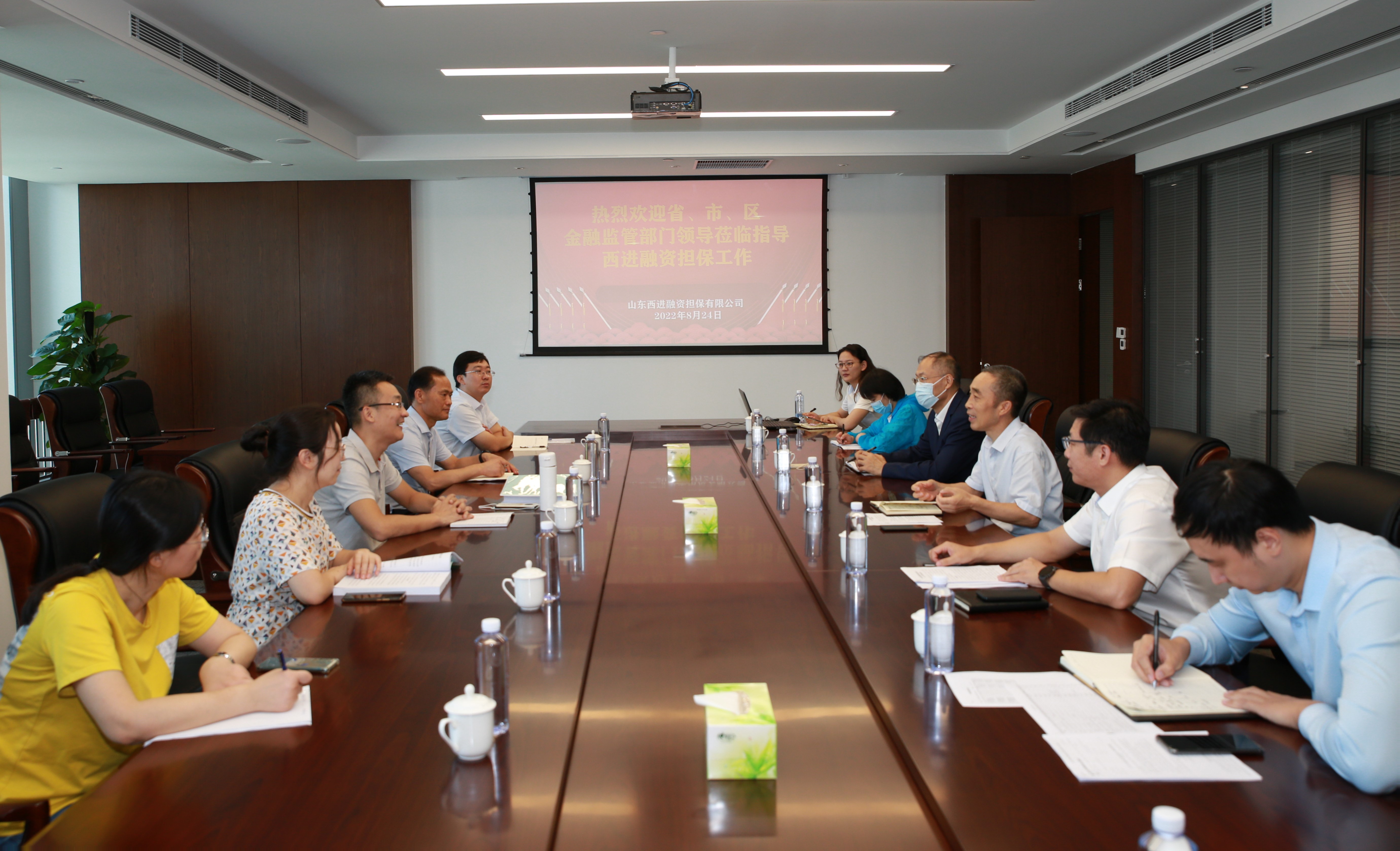 8月24日上午,山東省地方金融監(jiān)管局監(jiān)管二處岳曉光處長一行來到山東西進融資擔(dān)保有限公司開展專項檢查,并召開工作會議。市、區(qū)金融監(jiān)管部門相關(guān)領(lǐng)導(dǎo)陪同參加,集團黨委委員、總會計師范天云,西進擔(dān)保公司相關(guān)人員參加了會議。