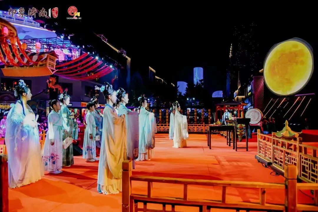 本次活動(dòng),作為印象濟(jì)南•泉世界品牌文化節(jié)事活動(dòng)的又一創(chuàng)新呈現(xiàn),同時(shí)還是第十屆濟(jì)南國(guó)際泉水節(jié)的重要組成部分。中秋拜月大典在前四屆的經(jīng)驗(yàn)基礎(chǔ)上,以“盛世歡歌繁華鎏金”主題,通過(guò)拜月典禮、文旅演藝、國(guó)風(fēng)互動(dòng)等組合創(chuàng)意,持續(xù)打造踐行“文化兩創(chuàng)”的新載體。今年的中秋拜月大典,在展現(xiàn)祭月、賞月、拜月、頌月等傳統(tǒng)民俗的同時(shí),通過(guò)歌舞表演、舞臺(tái)氛圍、國(guó)風(fēng)互動(dòng)等形式融合展示,運(yùn)用多元形態(tài)傳播中華優(yōu)秀傳統(tǒng)文化,讓傳統(tǒng)文化創(chuàng)新展示展演,深入游客內(nèi)心。