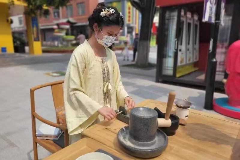 看一場(chǎng)精彩紛呈的演出,來(lái)一次時(shí)光穿越的文化體驗(yàn)。中秋小長(zhǎng)假期間,印象濟(jì)南·泉世界街區(qū)內(nèi)捶丸、投壺、手拓福字、博戲譴興、木射游戲等傳統(tǒng)互動(dòng)體驗(yàn)吸引了不少游客們的目光。不僅能看,還能動(dòng)手參與體驗(yàn),將非遺文化與沉浸式體驗(yàn)相融合,提高游客們對(duì)非遺的參與感與認(rèn)同感。
