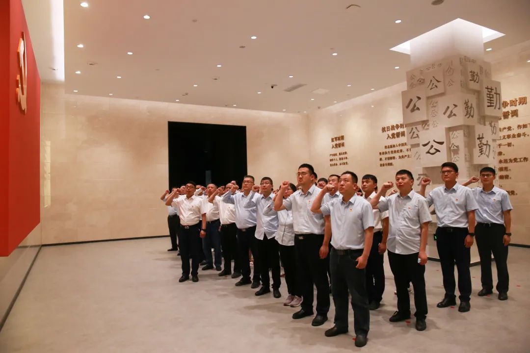 在教育館宣誓廳,面對鮮紅的黨旗,全體黨員重溫入黨誓詞并莊嚴宣誓,永遠牢記共產(chǎn)黨員的初心使命,始終筑牢為共產(chǎn)主義事業(yè)奮斗終生的堅定信念。