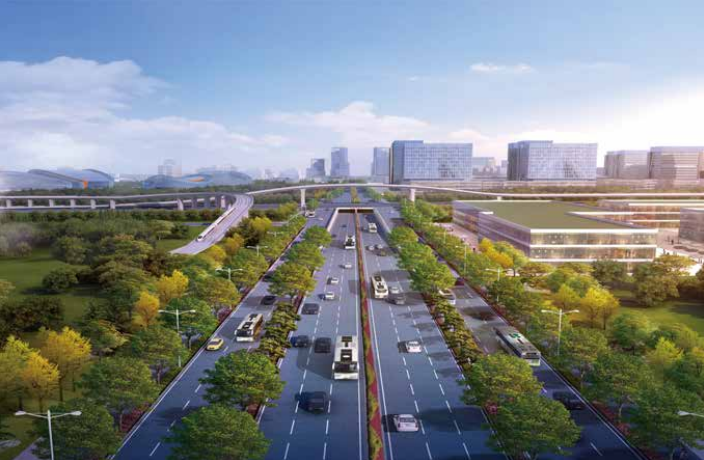 項(xiàng)目是黃河北岸復(fù)合交通走廊,是起步區(qū)內(nèi)部重要的快速通道,作為起步區(qū)的景觀軸、交通軸、經(jīng)濟(jì)軸、功能軸,串聯(lián) 3 大組團(tuán) 5 處重點(diǎn)片區(qū);同時(shí)也是銜接多條跨黃通道,溝通起步區(qū)與主城區(qū),加強(qiáng)南北聯(lián)系的重要走廊。黃河大道考慮交通功能優(yōu)先、兼顧綠色出行、生態(tài)景觀等多重需求。