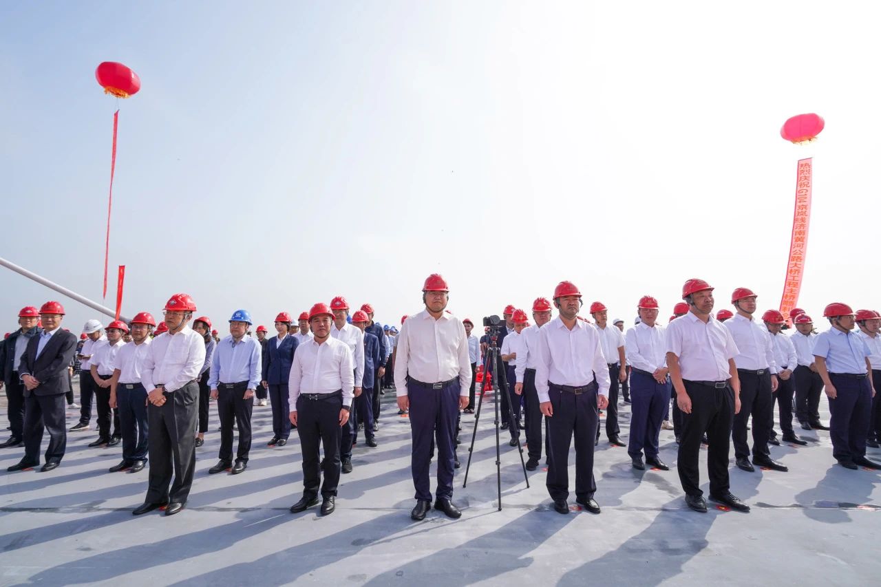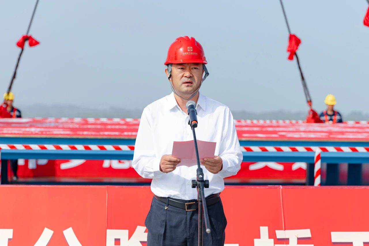 建設(shè)集團黨委書記、董事長史海成宣布G104京嵐線濟南黃河公路大橋主橋合龍。