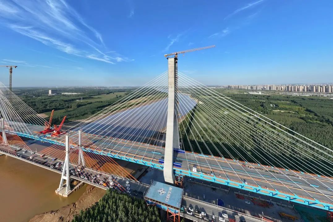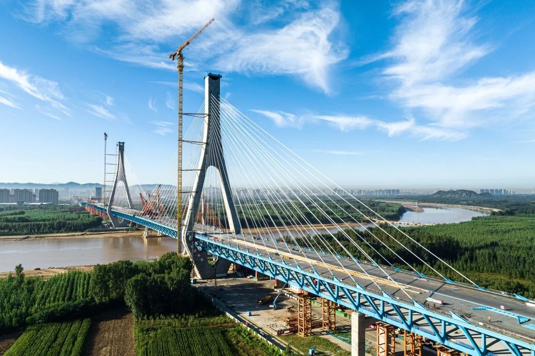 G104京嵐線濟南黃河公路大橋工程是連接濟南新舊動能轉(zhuǎn)換起步區(qū)與老城區(qū)的南北向主干道,是濟南市“四橋四隧”規(guī)劃建設(shè)的重要組成部分,對助推濟南加速邁向黃河時代、促進起步區(qū)經(jīng)濟社會發(fā)展具有重要意義。項目采用雙塔雙索面公軌合建鋼桁梁斜拉橋形式建造,全長7.748公里,主線橋梁工程長6.87公里,建設(shè)工期48個月,計劃2025年6月底通車。