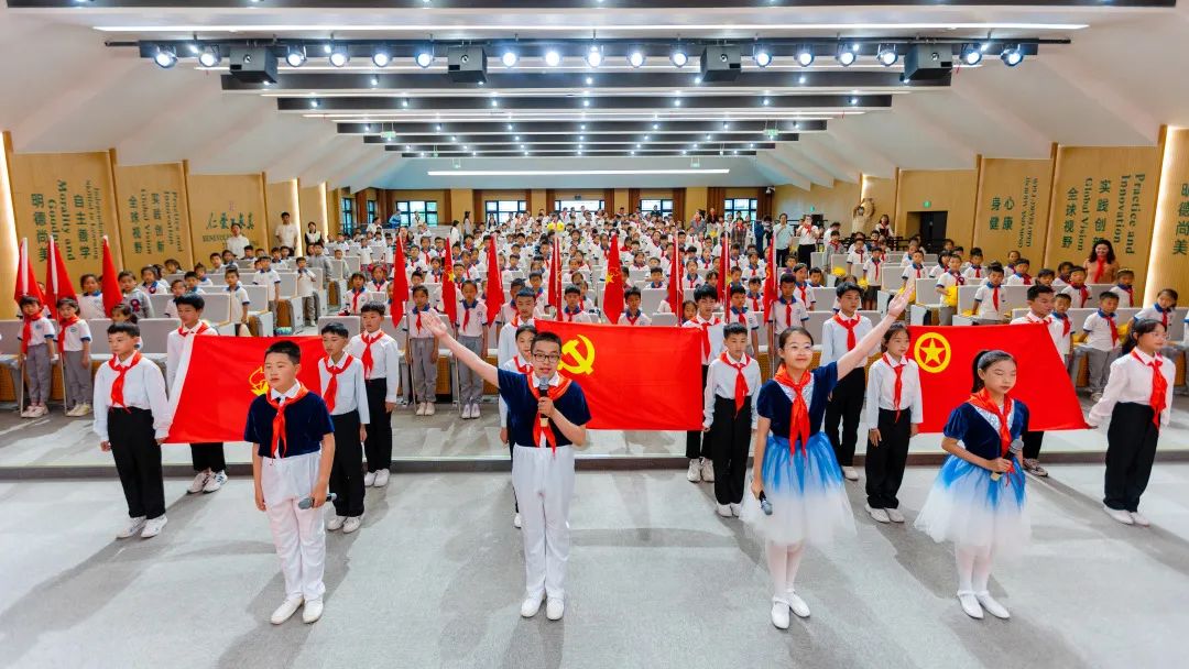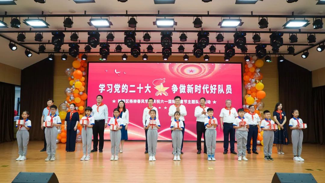 活動現(xiàn)場,與會嘉賓們?yōu)樾氯腙?duì)的少先隊(duì)員們佩戴了紅領(lǐng)巾,為新建中隊(duì)授中隊(duì)旗,見證了黨、團(tuán)、隊(duì)三旗傳遞,徐冬梅為孩子們送上了“六一”寄語,建設(shè)集團(tuán)為孩子們贈送了入隊(duì)成長禮物。