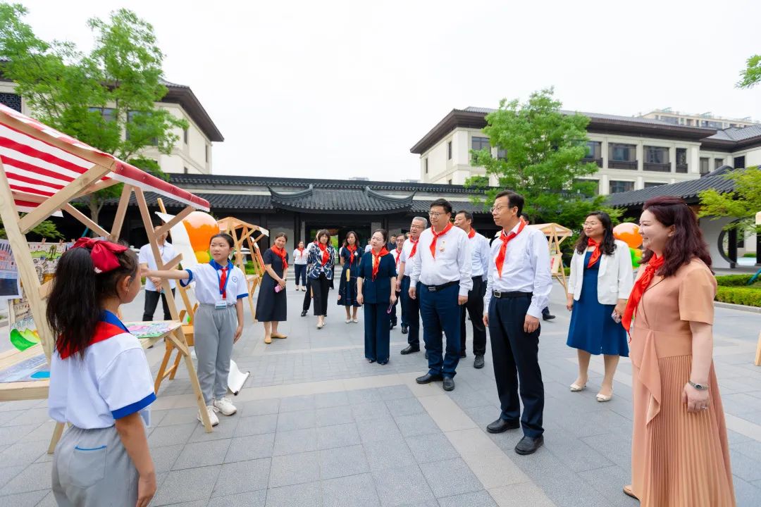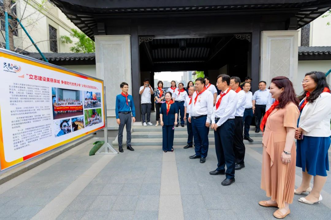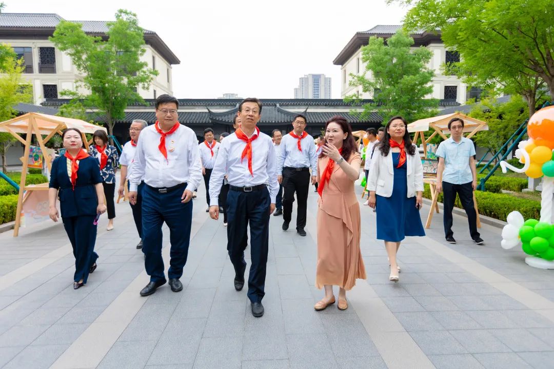 活動結(jié)束后,孫常建一行在楊柳春風(fēng)學(xué)校進(jìn)行了實(shí)地參觀調(diào)研,了解了書香校園建設(shè)活動,并與孩子們進(jìn)行了親切交流。孩子們熱情洋溢地介紹了“槐蔭少年說”黨團(tuán)隊(duì)一體化品牌建設(shè)活動、“我是黃河岸邊好少年”黃河文化項(xiàng)目化學(xué)習(xí)特色課程、“我眼中的康養(yǎng)名城、活力槐蔭”畫展和手工展、“家住槐蔭‘育’見成長”教育品牌、學(xué)校校訓(xùn)和南北融合辦學(xué)理念等情況,并進(jìn)行了古箏、寫生、經(jīng)典誦讀等美育教育特色活動表演,美術(shù)社團(tuán)、舞蹈社團(tuán)、合唱團(tuán)、足球社團(tuán)、啦啦隊(duì)的成員代表們進(jìn)行了成果展示。