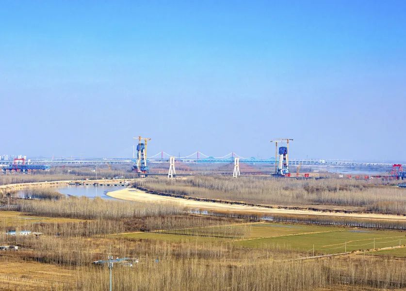 黃河流域濟(jì)南段,濟(jì)南黃河公路大橋東側(cè),黃河上第一座不等跨并橋建設(shè)工程,同時也是黃河上跨徑最大、鋼橋總長最長的公軌分層合建橋梁,濟(jì)南黃河公路大橋改擴(kuò)建工程正在有序推進(jìn)工程建設(shè)。1982年建成的當(dāng)時亞洲跨徑最大的濟(jì)南黃河公路大橋,在服役41年之后,見證著又一次“歷史跨越”。