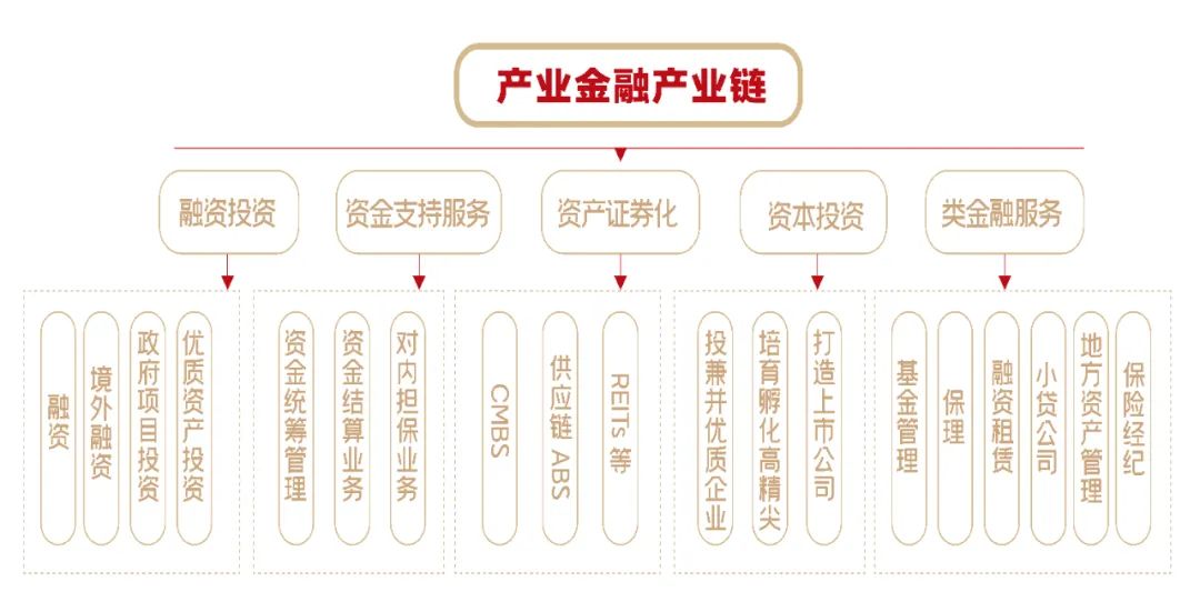 按照產(chǎn)業(yè)金融產(chǎn)業(yè)鏈發(fā)展規(guī)劃,依托國(guó)泰君安、中信證券、伽利略資本等專業(yè)投研機(jī)構(gòu),篩選優(yōu)質(zhì)投資標(biāo)的,以投帶引,獲得財(cái)務(wù)性投資回報(bào),同時(shí)培育孵化產(chǎn)業(yè)項(xiàng)目,布局優(yōu)勢(shì)產(chǎn)業(yè);借助科研院所、高校等科研資源,尋找科技成果轉(zhuǎn)化類優(yōu)質(zhì)項(xiàng)目,提前布局高精尖產(chǎn)業(yè),聚合產(chǎn)業(yè)資源,打造產(chǎn)業(yè)集群;利用集團(tuán)資源優(yōu)勢(shì),及時(shí)捕獲資產(chǎn)證券化渠道信息,豐富CMBS、供應(yīng)鏈ABS、REITs等方式方法,產(chǎn)業(yè)鏈協(xié)同推動(dòng)凈收益好的項(xiàng)目資產(chǎn)證券化,盤活資產(chǎn),降低集團(tuán)整體融資成本。