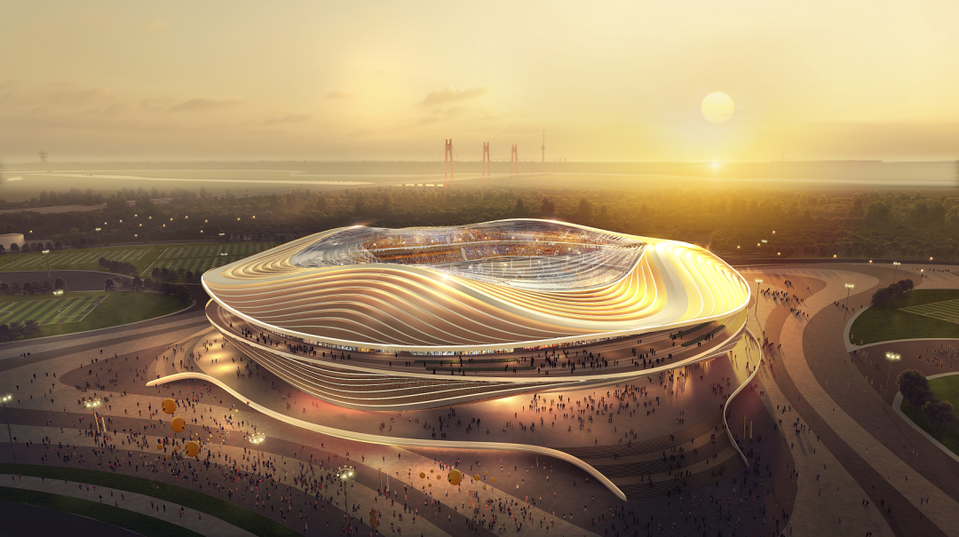濟(jì)南新舊動(dòng)能轉(zhuǎn)換起步區(qū)黃河體育及科技園區(qū)基礎(chǔ)設(shè)施一期工程位于濟(jì)南市起步區(qū)崔寨片區(qū)內(nèi),緊鄰黃河建設(shè),北至鳳凰路、南至華河路、西至黃河大道、東至規(guī)劃路,包括專業(yè)足球場(chǎng)、體育館、游泳館及全民健身中心。其中,專業(yè)足球場(chǎng)總建筑面積約19.7萬平方米,地下1層,地上5層,建筑高度60米,場(chǎng)館外圈直徑達(dá)280米,索桁架最大懸挑長度約45米,總用鋼量2.34萬噸。建成后可容納6萬余人,是省內(nèi)首座超大型專業(yè)足球場(chǎng),國內(nèi)最大的專業(yè)足球場(chǎng)之一,具備承辦世俱杯、亞洲杯等國際足聯(lián)、亞足聯(lián)的頂尖賽事能力。