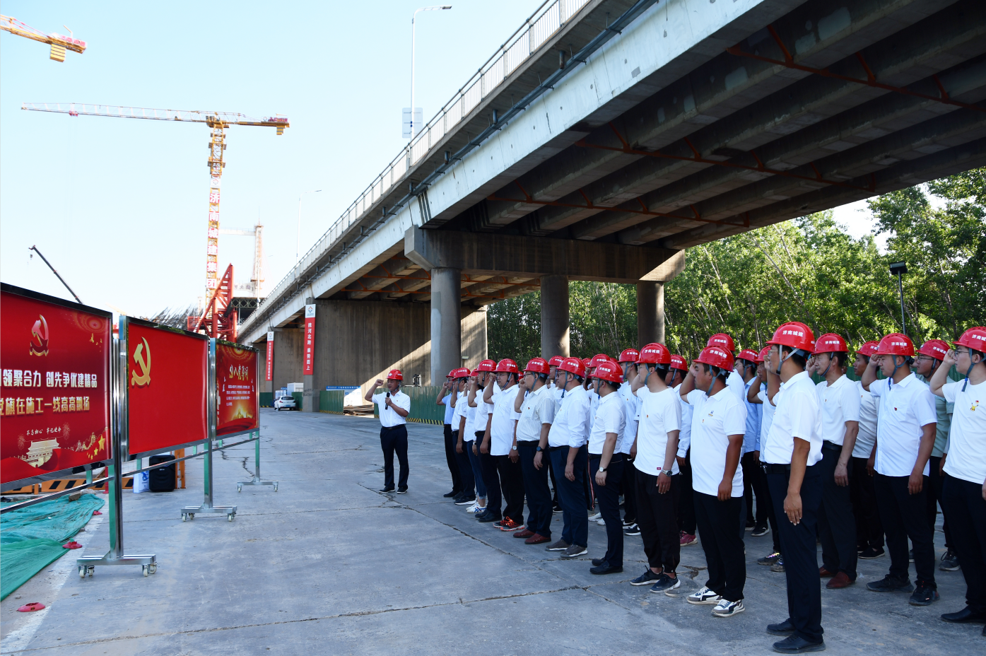 項目部充分發(fā)揮黨員先鋒模范帶頭作用,積極成立黨員突擊隊、青年突擊隊,劃分“黨員責任區(qū)”,設(shè)立“黨員先鋒崗”,靶向聚焦,先鋒突擊,以“大干快上”扛起政治責任,做到抓關(guān)鍵、補短板、強弱項,層層落實管控責任,合力推動工程建設(shè)提質(zhì)增效。