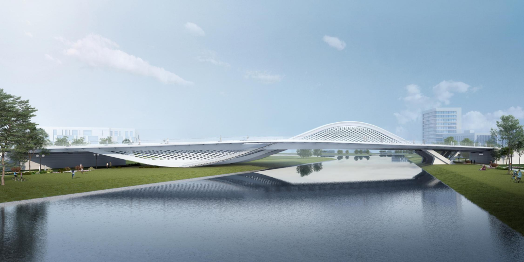橫二路大寺河橋由世界著名橋梁設(shè)計師Marc MIMRAM先生主設(shè)計,由建設(shè)集團所屬濟南城建集團公司承建。橋梁全長150.16m,采用鋼結(jié)構(gòu)梁拱組合體系一跨跨越大寺河,橋面總寬37m,道路寬度42m,雙向六車道,橋梁鋼結(jié)構(gòu)總鋼材用量約4197噸。