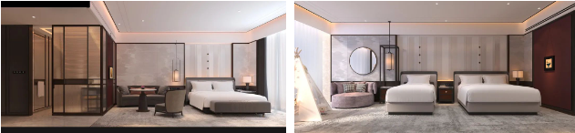 客房區(qū)域的設計以“畫屏”借助宋代屏風的藝術形態(tài),通過提取、拆解、重構,以中國傳統(tǒng)繪畫留白的手法契合現(xiàn)代年輕人的審美。