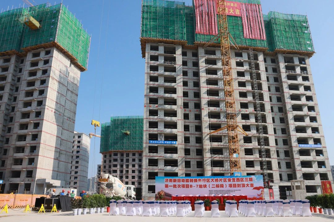 近日,濟南城市建設集團受委托建設的濟南新舊動能轉換起步區(qū)大橋片區(qū)安置西區(qū)三期一批次B-7地塊項目再迎節(jié)點,該地塊住宅樓全部實現(xiàn)封頂,項目建設進入新階段。