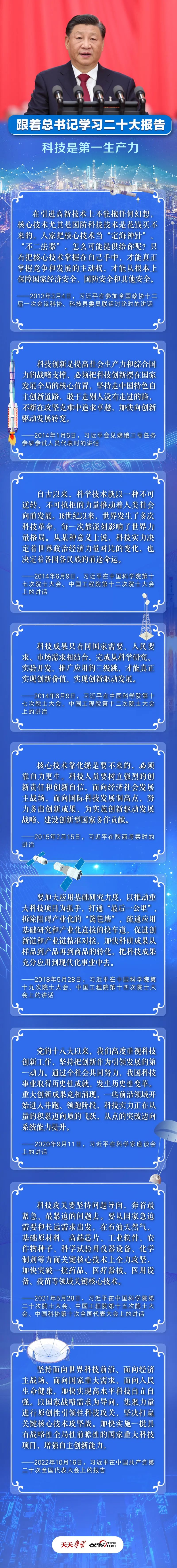 科技興則民族興,科技強(qiáng)則國(guó)家強(qiáng)。習(xí)近平總書記曾多次強(qiáng)調(diào)“科技是第一生產(chǎn)力”,并對(duì)加快建設(shè)科技強(qiáng)國(guó),實(shí)現(xiàn)高水平科技自立自強(qiáng)作出具體部署。央視網(wǎng)《天天學(xué)習(xí)》為您梳理相關(guān)重要論述,與您一起學(xué)習(xí)。