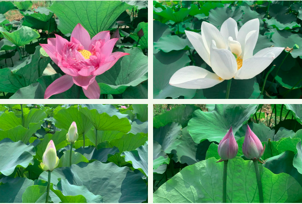 荷花通常生長在池塘、湖泊等水域環(huán)境中,花期6月至9月,且對陽光和養(yǎng)分要求較高。濟西濕地現(xiàn)有荷花400余種,睡蓮200余種,總種植面積約600畝。本次四朵并蒂蓮為同一品種天中翡翠,這也是濟西濕地景區(qū)首次同時發(fā)現(xiàn)四株并蒂蓮奇觀。