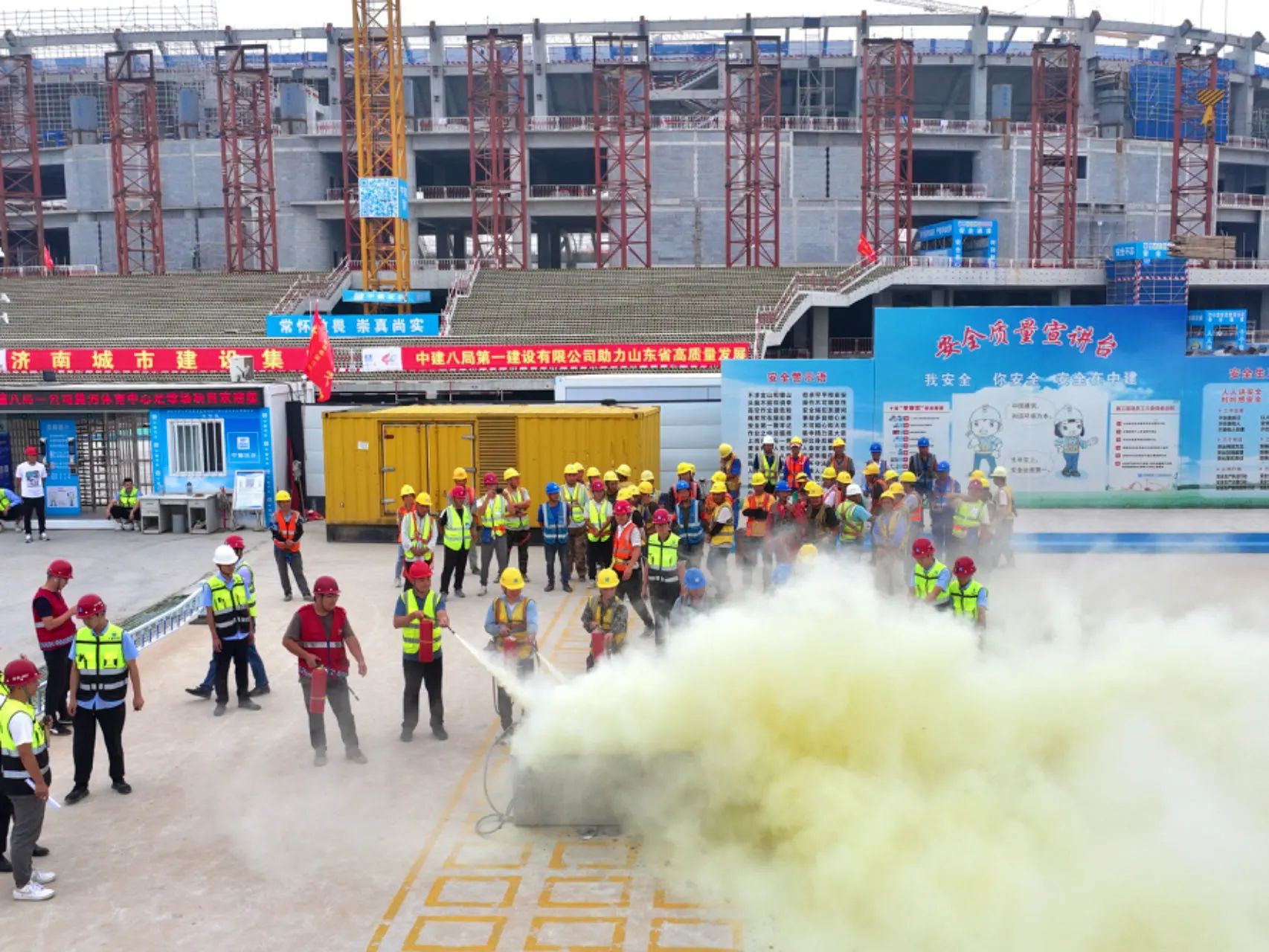 為了進一步筑牢消防安全防線,全面提升消防救援隊伍的滅火救援能力,提高全員應對復雜環(huán)境下的火災處置能力,近日,集團工程四部在黃河體育中心專業(yè)足球場項目組織開展2023年秋季消防應急演練活動。