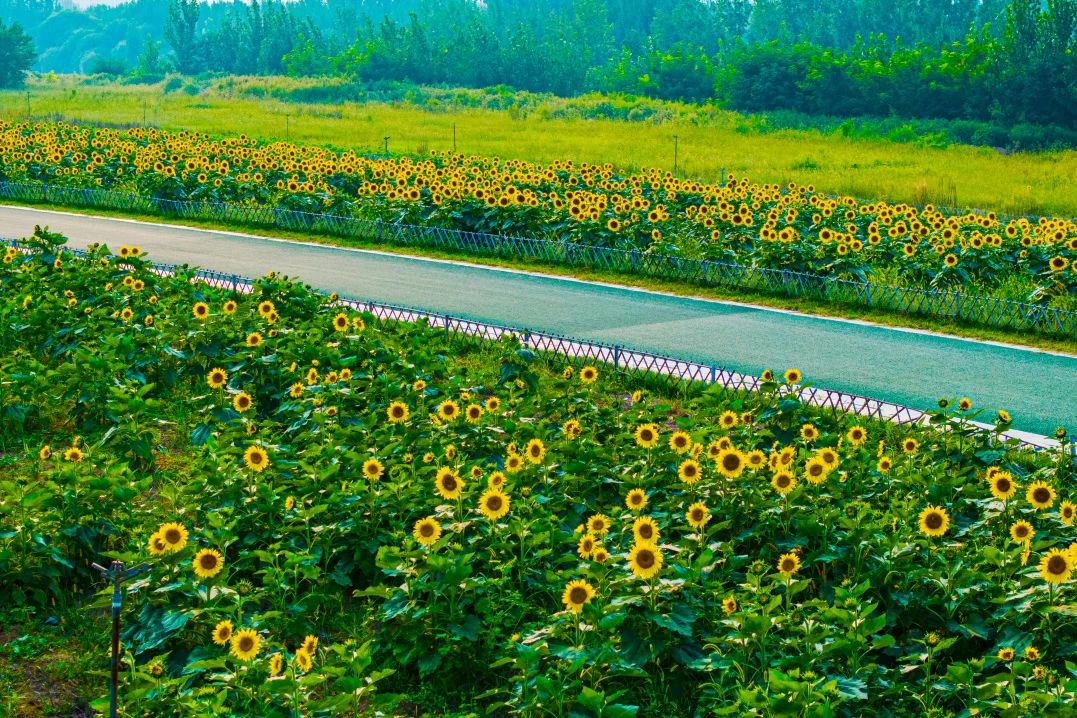 直接導(dǎo)航“濟(jì)南黃河大橋”,過(guò)橋后立即右轉(zhuǎn),沿著黃河北大堤繼續(xù)向前直行2-3公里,道路左邊就能看到大片的花海。