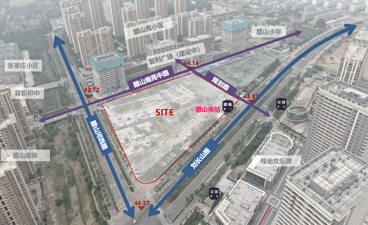 項目位于濟南槐蔭區(qū)臘山片區(qū)劉長山路以北、臘山河西路以東,片區(qū)屬于南城發(fā)展區(qū),距濟南西站約6. 3km,距離濟南站約9.4km。項目定位為打造以休閑、娛樂、餐飲為主的一站式綜合商業(yè)。