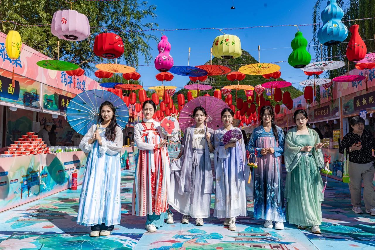 10月1日,濟(jì)南華山風(fēng)景區(qū)古風(fēng)市集——鵲華雅集開(kāi)市,70多家市集商戶(hù)還原古代市集繁榮市貌,現(xiàn)場(chǎng)歌舞不斷、琴聲悠揚(yáng)。