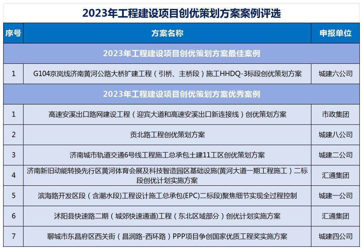 近日,由中國(guó)施工企業(yè)管理協(xié)會(huì)主辦的工程建設(shè)項(xiàng)目創(chuàng)優(yōu)策劃方案典型案例征集活動(dòng)舉行,建設(shè)集團(tuán)所屬濟(jì)南城建集團(tuán)公司報(bào)送的《G104京嵐線濟(jì)南黃河公路大橋擴(kuò)建工程(引橋、主橋段)施工HHDQ-3標(biāo)段創(chuàng)優(yōu)策劃方案》在本次活動(dòng)中獲評(píng)最佳案例,《濱海路開(kāi)發(fā)區(qū)段(含潮水段)工程設(shè)計(jì)施工總承包(EPC)二標(biāo)段)聚焦細(xì)節(jié)實(shí)現(xiàn)全過(guò)程控制》等7項(xiàng)方案獲評(píng)優(yōu)秀案例。
