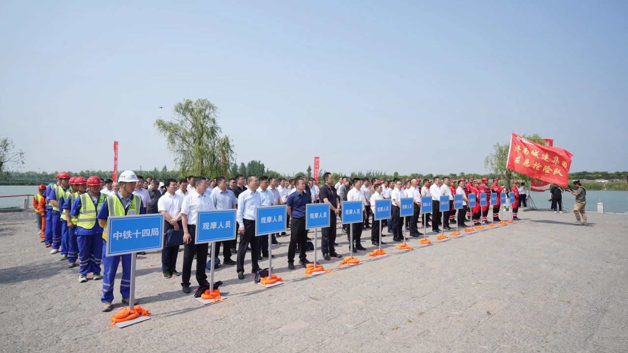 5月22日,建設集團在濟南市黃崗路穿黃隧道工程現(xiàn)場(北岸城建集團施工區(qū)域)組織開展2024年度防汛應急演練。山東省應急廳防汛抗旱處副處長王震,市應急管理局副局長王少東,市國資委黨委委員、副主任楊秀華,建設集團黨委副書記、總經(jīng)理許為民出席演練活動,市應急管理局防汛抗旱處、市國資委信訪處、市住房和城鄉(xiāng)建設局建筑市場監(jiān)管處相關負責同志,建設集團部分領導班子成員,集團各部室、子公司負責同志參加活動。