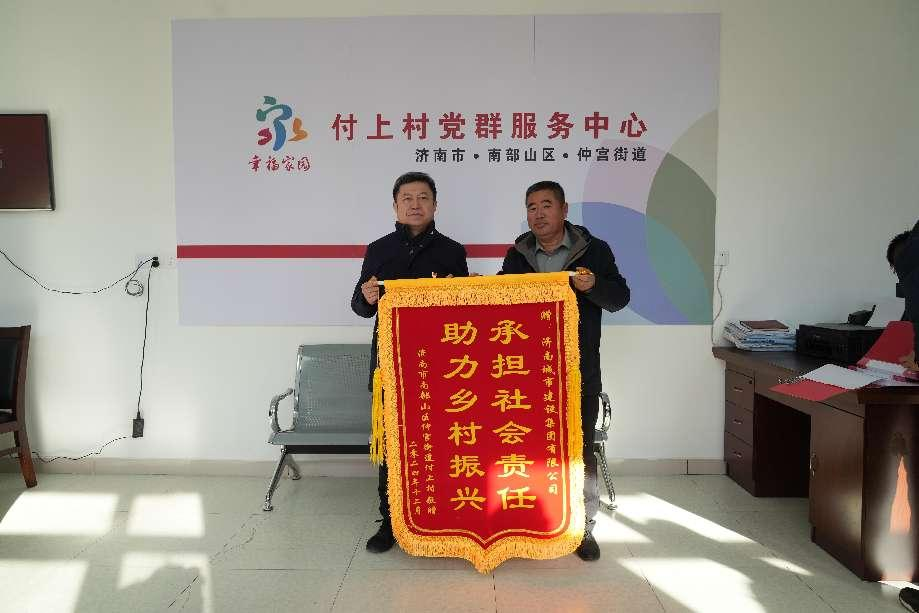 活動(dòng)中,建設(shè)集團(tuán)黨群工作部與山東省市政行業(yè)協(xié)會(huì)聯(lián)合開展“黨建引領(lǐng)聚合力 村企共建促發(fā)展”主題黨日活動(dòng),聽取付上村發(fā)展現(xiàn)狀介紹,了解派駐第一書記工作開展情況,查看付上村路燈、黨群服務(wù)中心等幫扶建設(shè)成果,付上村向建設(shè)集團(tuán)和山東省市政行業(yè)協(xié)會(huì)贈(zèng)送錦旗。