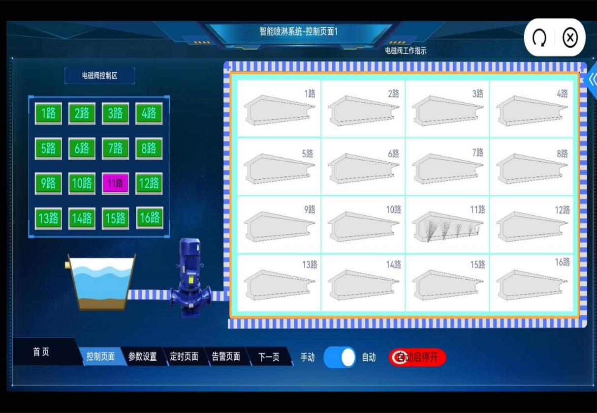 該系統(tǒng)在梁場(chǎng)建設(shè)時(shí)提前在臺(tái)座中預(yù)埋噴淋管道,管道與自動(dòng)供儲(chǔ)水后臺(tái)相連通。當(dāng)T梁模板拆除后,可通過手機(jī)APP控制噴淋系統(tǒng)對(duì)T梁的腹板和翼板進(jìn)行全面均勻噴灑,確保T梁養(yǎng)護(hù)無死角,同時(shí)通過手機(jī)應(yīng)用控制養(yǎng)護(hù)操作,隨時(shí)隨地一鍵啟動(dòng)或關(guān)閉,必要時(shí)選擇自動(dòng)化模式,實(shí)現(xiàn)T梁24小時(shí)不間斷養(yǎng)護(hù)。