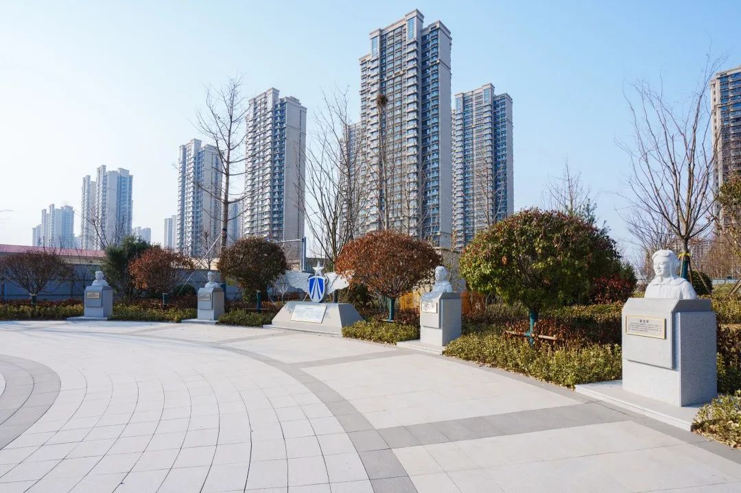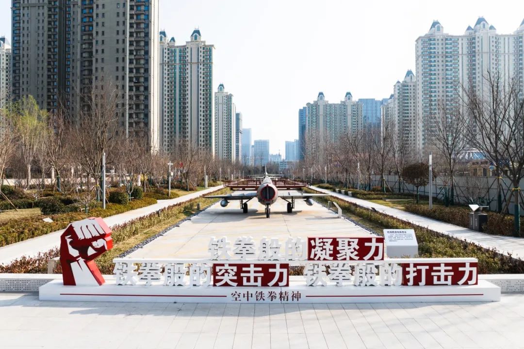 在公園南地塊紀(jì)念廣場,通過展示張莊機(jī)場原駐扎部隊(duì)6位空軍戰(zhàn)斗英雄的雕像和英雄事跡,以及“空中鐵拳精神”展示,傳承紅色基因。