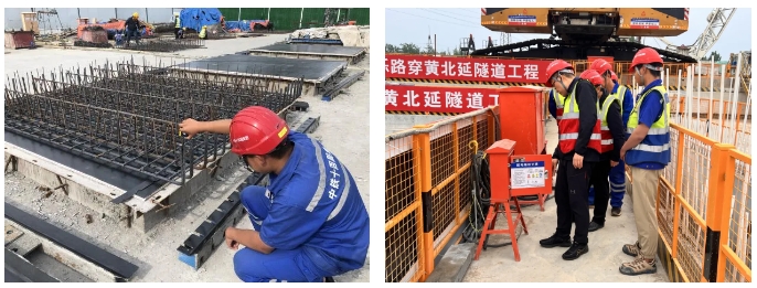濟(jì)濼路穿黃北延隧道工程起自黃河隧道敞開段,通過兩臺4000噸重、直徑為15.76米的盾構(gòu)機(jī)以隧道方式下穿邯濟(jì)鐵路、鵲山水庫后,以明挖暗埋方式下穿石濟(jì)客專及邯膠聯(lián)絡(luò)線,過科學(xué)城南邊界路后出地面,繼續(xù)向北直至國道G308(北延工程終點)。采用雙管雙層隧道,雙向六車道公鐵合建方案,管片外徑15.2米,項目全長4.38公里,其中隧道總長度3.23公里(含盾構(gòu)段2.05公里)。上層道路采用城市主干路標(biāo)準(zhǔn),雙向六車道,設(shè)計速度60公里/小時。下層軌道交通采用市域鐵路標(biāo)準(zhǔn),設(shè)計速度100公里/小時。