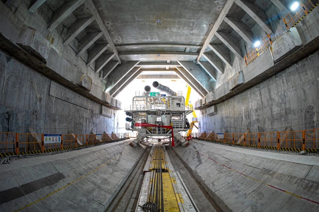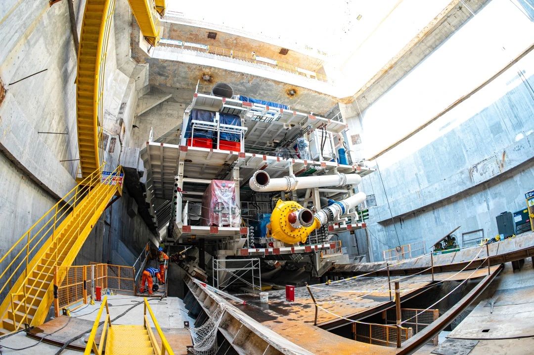負責(zé)盾構(gòu)施工的“山河號”泥水平衡盾構(gòu)機,最大開挖直徑達17.5米,相當(dāng)于6層樓的高度,盾構(gòu)機總長163米、重5200噸、裝機總功率12580千瓦。