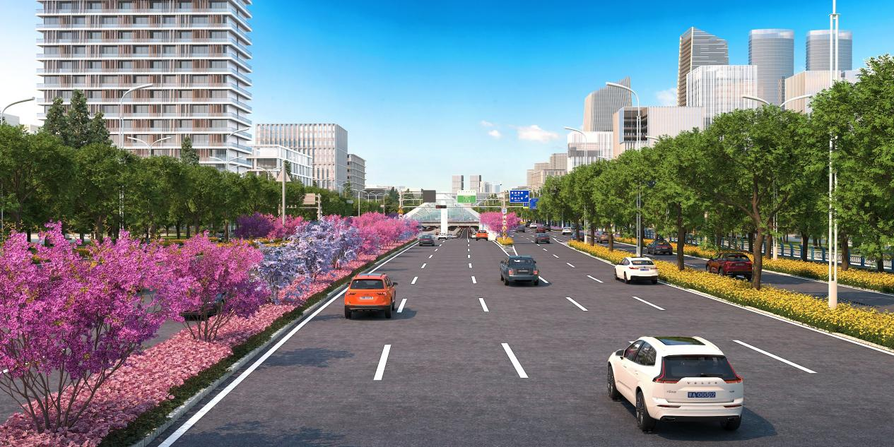 其中,地下快速路約4.2公里(含地面輔路),地面快速路約4.0公里,設(shè)置2處不完全地下互通,1處分離立交,總占地面積1094.5畝。主路采用雙向六車道,設(shè)計速度80Km/h,輔路采用雙向六車道,設(shè)計速度50Km/h。